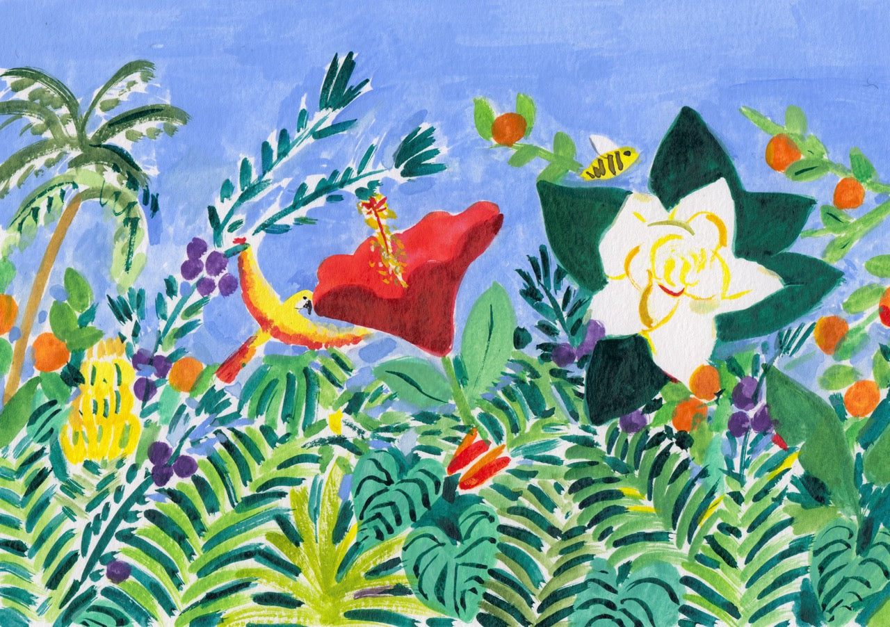 Despite her frequent illustrations for the press, the inherent inclination for travel, emblematic of the Memo Paris characteristic, inevitably captivated her. Her sunny line, her brightly coloured watercolours, her expressive and playful scenes which characterize her graphic style have highlighted the perfumes Argentine and Ilha do Mel.