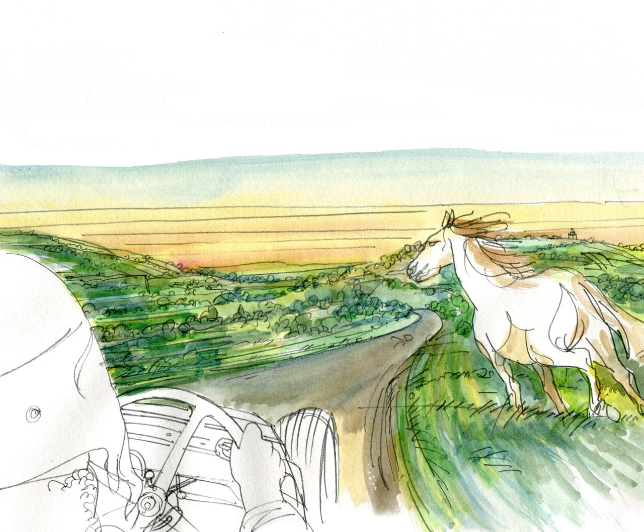 Passionate globe-trotter and experienced notebook artist, Alain Bouldouyre has travelled around the world several times and has been drawing and painting it relentlessly since the 1970s. After publishing numerous stories, notebooks and even travel guides, he now collaborates with Voyageurs du Monde and DΓ©serts du Monde,Β as well as illustrates the fine collection of Dictionnaires amoureux published by Plon. His meeting with Memo Paris was an obvious choice, and he has notably sketched the world of Irish Leather, the Irish countryside and the ardour of horses, in a lively and invigorating watercolour technique.