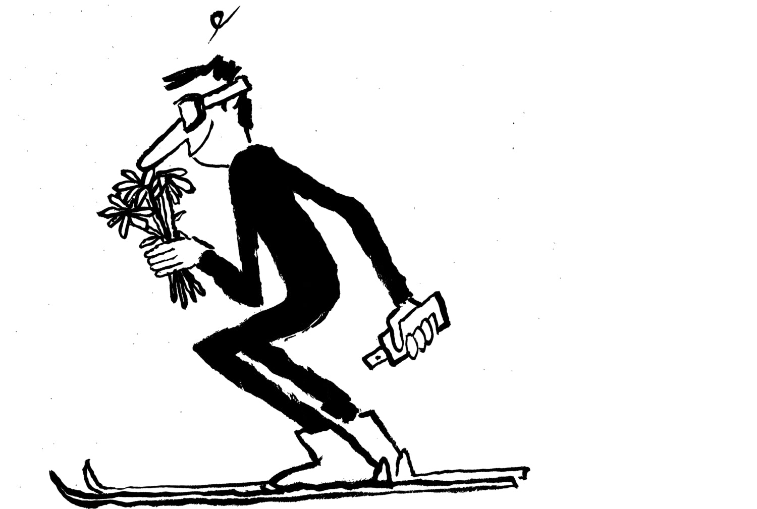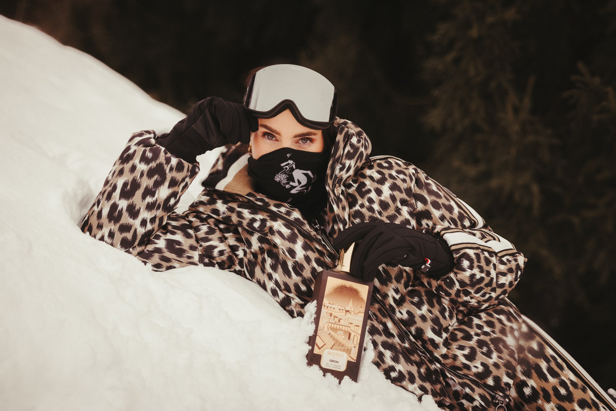 The ski season is open, and the fragrance house Memo Paris is teaming up at full speed with the iconic brand Fusalp. Together, they have designed a dedicated piece: a black neck warmer adorned with an illustration created by Jean Jullien, the artist behind the limited edition of Odéon. His signature character is shown here ready to race down the slope, holding a perfume bottle in one hand and a bouquet of roses in the other.