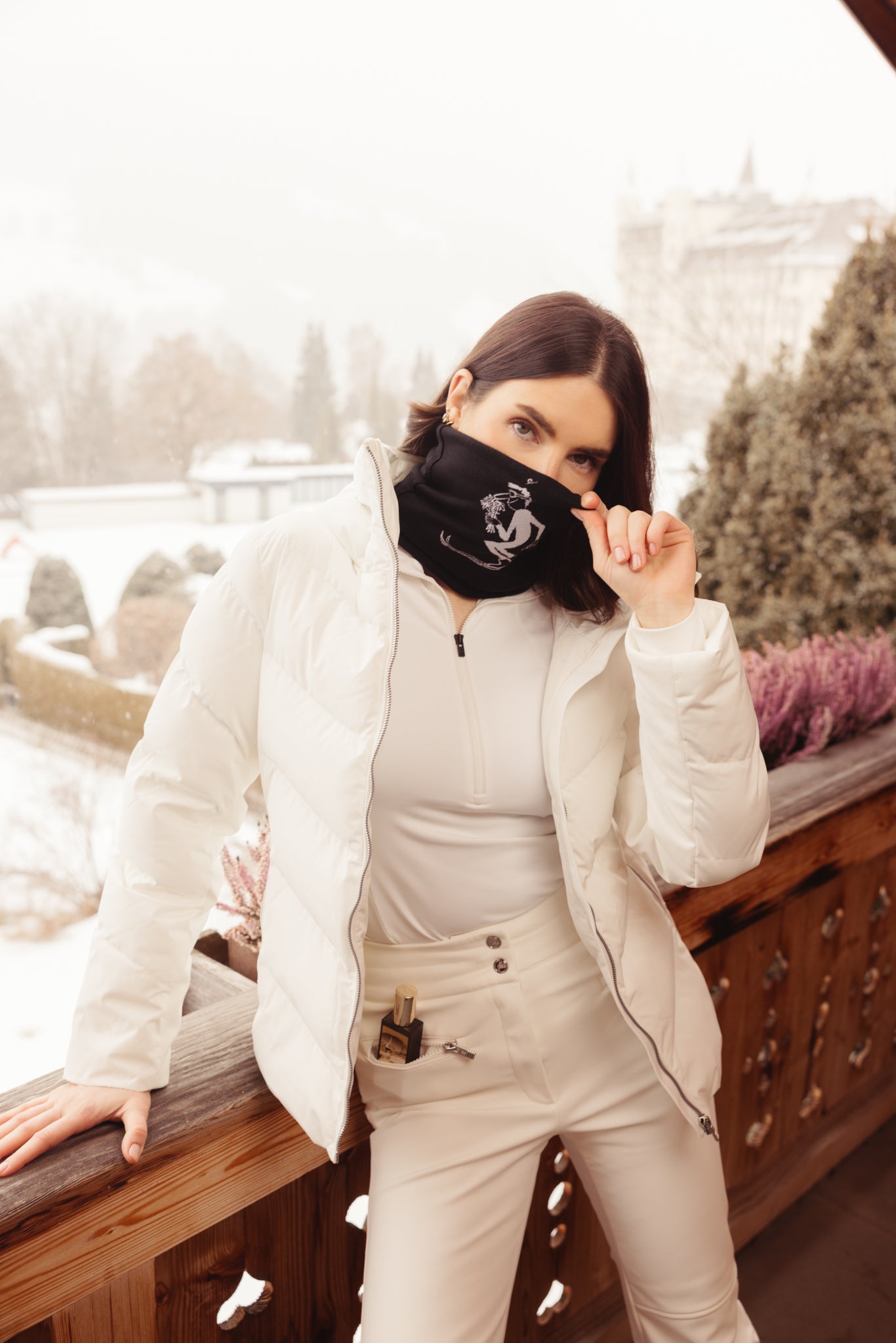 This neck warmer, known in French as a ‘cache-nez’ (nose warmer), is a nod to our talented perfumers, also known as ‘noses’ - allows you to wear one of our signature fragrances close to your neck, while elegantly enjoying the beauty of the alpine landscape...Read more.